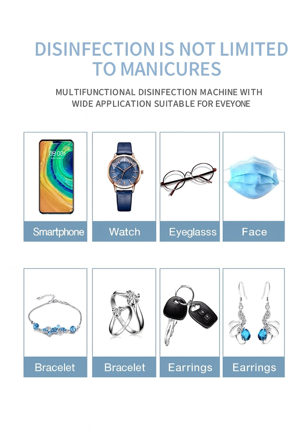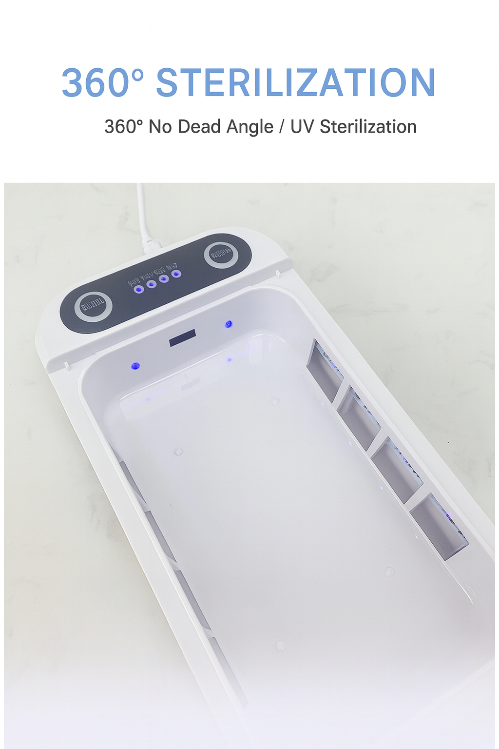 The Nuviaco GlowBox Pro is a multifunctional UV disinfection box designed for professionals. Equipped with high-intensity ultraviolet sterilization, a wireless charging pad, and durable stainless steel tools, it provides a fast and efficient way to keep your beauty instruments perfectly clean. Ideal for nail artists, brow masters, and anyone who values hygiene and style.